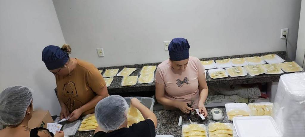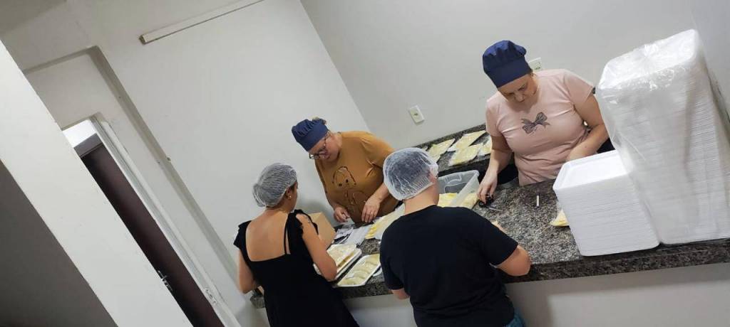 E não foi só organização, não! Eles literalmente colocaram a mão na massa, ajudando na montagem dos pastéis e mostrando que trabalho em equipe e solidariedade andam juntos.
