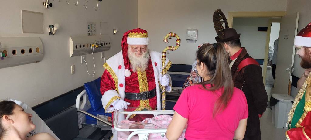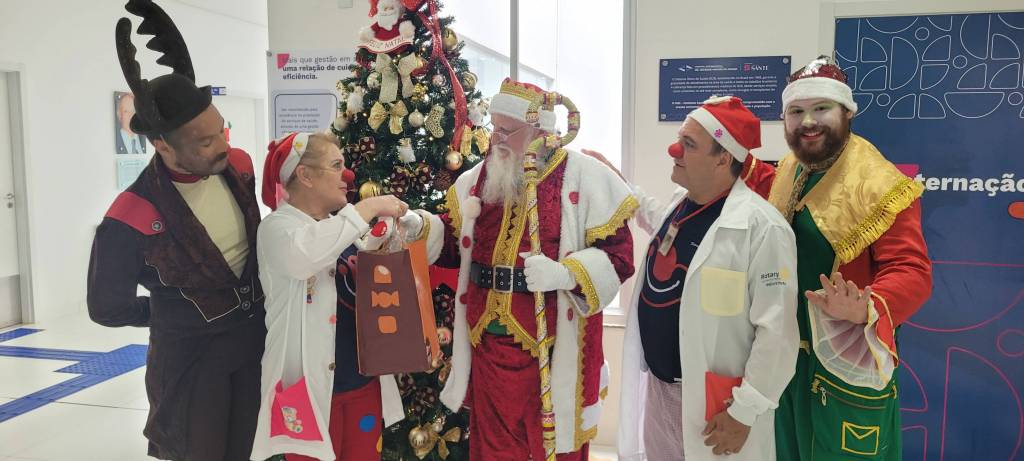 Membros do projeto Semeando Sorrisos, do Rotary Club de Francisco Beltrão Industrial, juntamente com o Papai Noel, realizaram visitas especiais aos hospitais do município