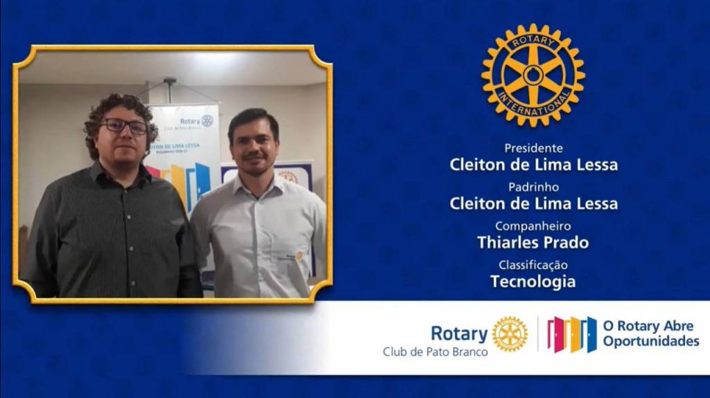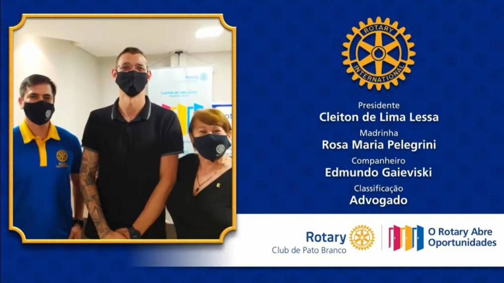 A reunião de admissão foi presidida pelo Companheiro Presidente do Ano Rotário 2020/2021 Cleiton de Lima Lessa e coordenada pelo Diretor de DQA (desenvolvimento do Quadro Associativo) do Clube Companheiro Valmir Dallacosta.