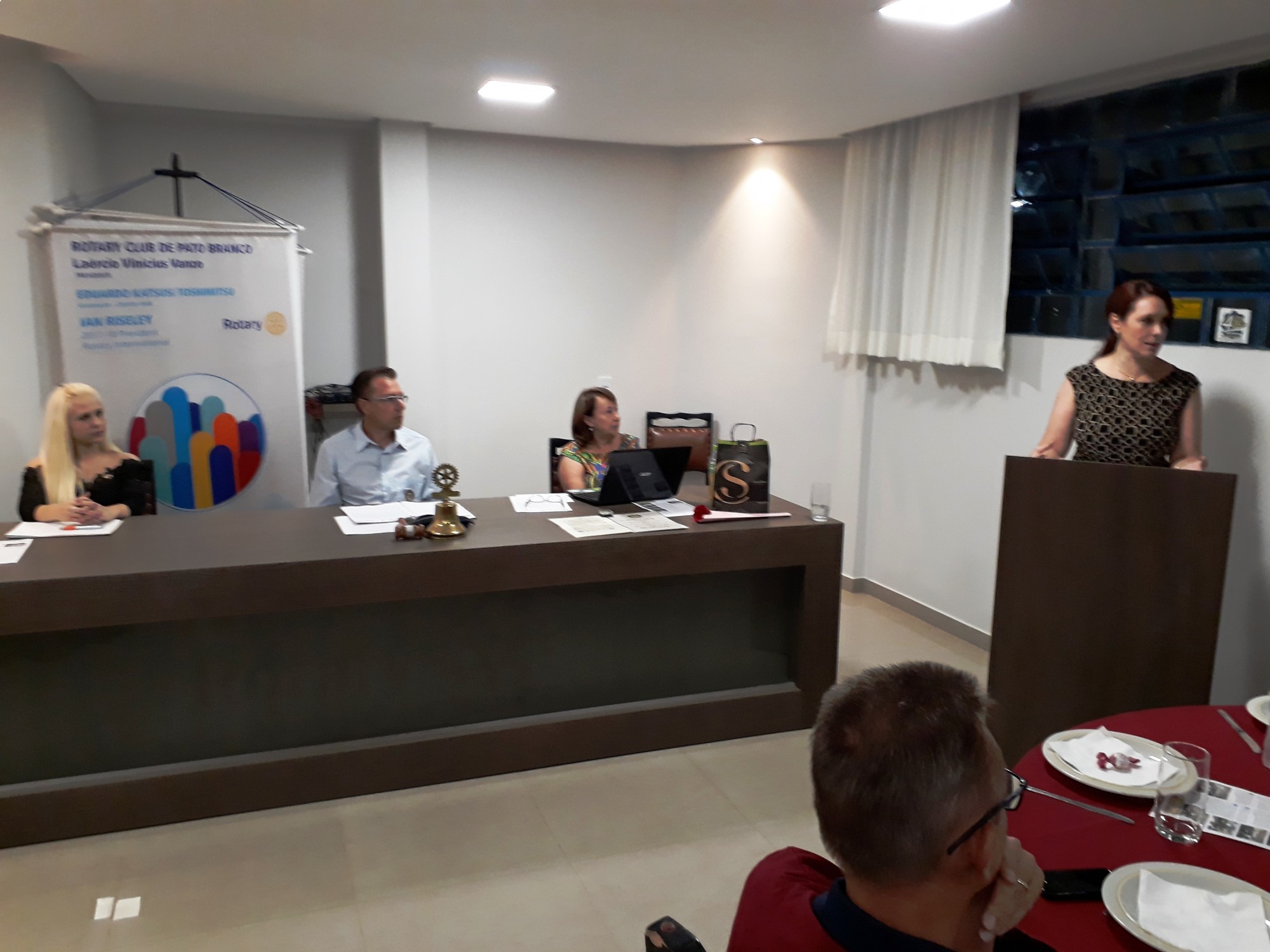 Entre as atividades, foi ministrada a palestra “A importância do jovem líder na sociedade” pela advogada Telismara de Fátima Silvestre. Ela é advogada, foi rotariana e atua na direção da Ordem dos Advogados do Brasil – OAB, subseção de Pato Branco. Na reunião, também ocorreu a Posse de um novo companheiro (matéria nessa edição). Após a reunião, aconteceu o momento de camaradagem e companheirismo, com um fausto jantar.