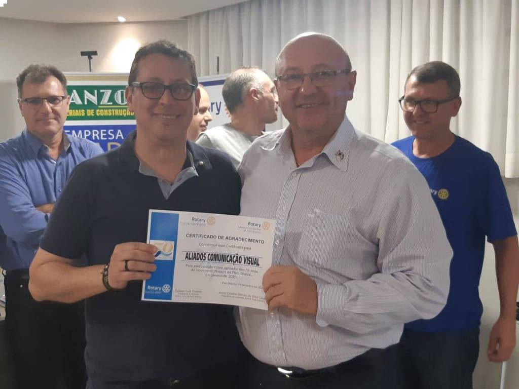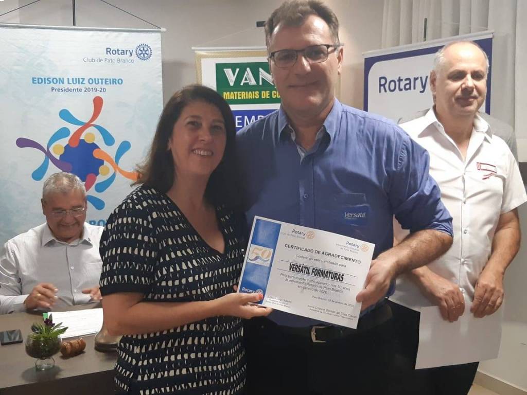 Da mesma forma receberam certificados de agradecimento os Rotary Clubs que organizaram o evento dos 50 anos do Movimento Rotário de Pato Branco.