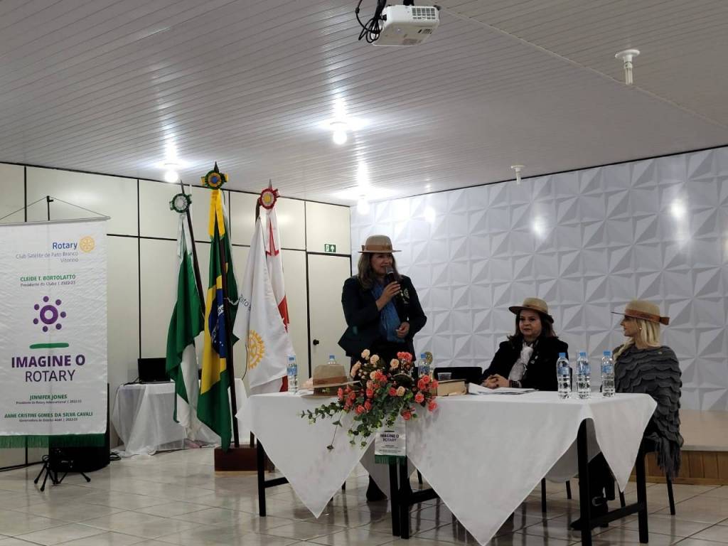 O Rotary Club Satélite de Pato Branco Vitorino, recebeu na noite de 10 de agosto a Visita Oficial da Governadora 2022/2023 do Distrito 4.640 do Rotary International, companheira Anne Cristine Gomes da Silva Cavalli. Na ocasião a Governadora Anne conheceu os projetos desenvolvidos pelo Club, após realizada a Assembleia aconteceu a festiva com admissão de dois novos associados. Esteve presentes além da Presidente 2022/2023 do Rotary Club de Pato Branco, Patrícia Bellé, o companheiro Albino Peiter (padrinho fundador), companheiras Inez Maria Betiato e Adriana Scarsi, Secretária Distrital.