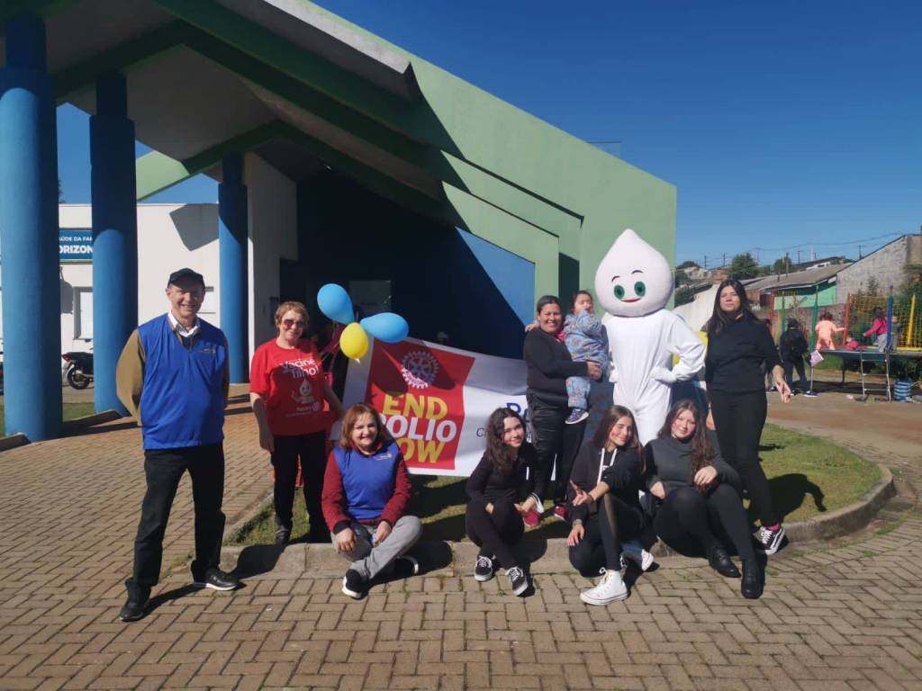 E o Rotary Club de Pato Branco, juntamente com o Interact Club de Pato Branco e os profissionais de saúde do posto no bairro Novo Horizonte, realização uma linda ação de divulgação e apoio as vacinas.