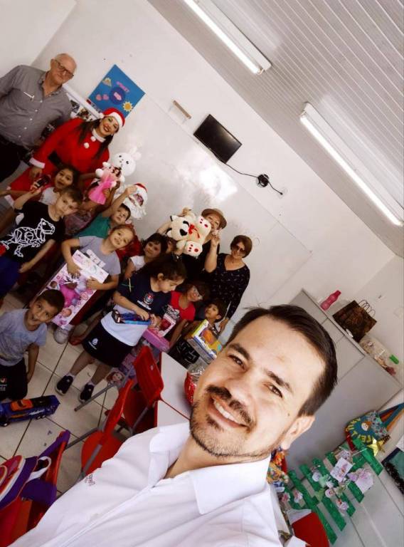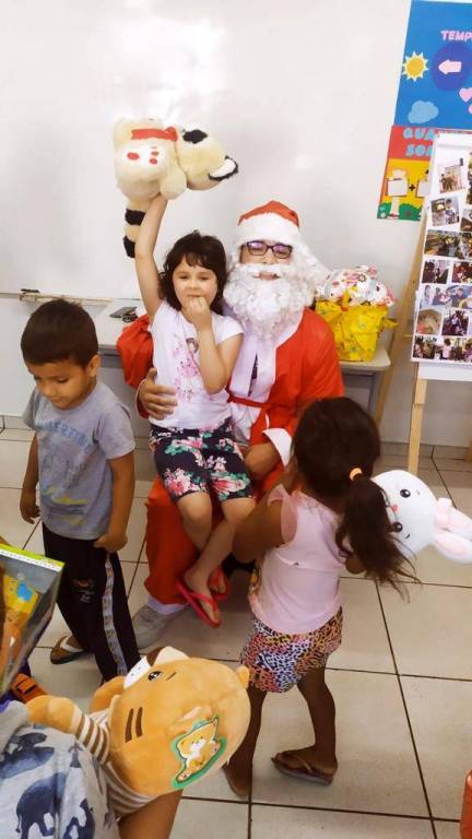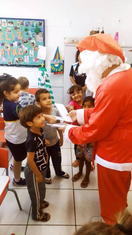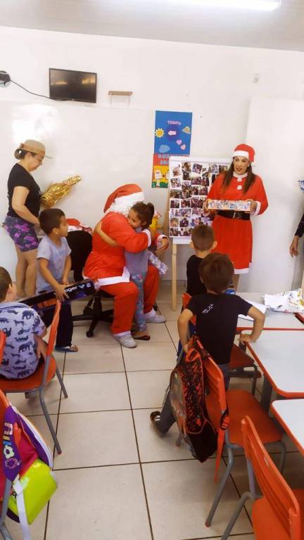 No final de novembro, a Presidente Patrícia Bellé recebeu um pedido muito especial do CMEI Três Marias, do bairro Novo Horizonte. O pedido era para o nosso clube adotar as cartinhas do papai noel do infantil 4 do Cmei. A presidente levou o assunto para a reunião semanal e por unanimidade o pedido foi acatado. Cada companheiro adotou uma cartinha, 19 no total, e ficou marcado para a manhã do dia 15/12/2022 o papai noel fazer a entrega dos presentes. Chegado o grande dia, as emoções já estavam a mil, não só por parte das crianças, mas também dos companheiros que fariam a ação acontecer. Nosso papai noel foi uma pessoa muito especial, foi o interactiano João Pedro (tesoureiro do nosso querido Interact) que de pronto atendimento aceitou a missão de incorporar o “bom velhinho”! Olhinhos lacrimejando, gritos de alegria, um pouquinho de medo, afinal, ‘o papai noel chegou, ele é de verdade, ele existe’, e vale salientar que a mamãe noel se fez presente também, enfim, o casal Noel estava diante daquelas crianças que com muito carinho escreveram a sua cartinha. Foi uma manhã atípica para todos que lá estavam, não existem palavras no dicionário para descrever o quão emocionante foi essa ação. Isso é ser Rotary, é servir, é transformar, é inspirar vidas, é instigar o IMAGINE dentro de cada pessoa. O Rotary Club de Pato Branco teve seu natal antecipado para o dia 15/12/2022, com o abraço amoroso de agradecimento de cada criança do Cmei Três Marias.