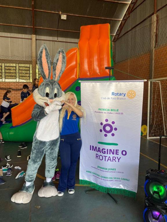 No dia 05 de abril, o Rotary Club de Pato Branco esteve juntamente com o Interact Club de Pato Branco na Escola Municipal José Fraron, onde realizou a ação de Páscoa para os alunos do jardim de infância a quinta série. Foram momentos de muita alegria e diversão com a presença do coelho da Páscoa. Agradecemos à Paraná Plásticos pelo empréstimo da fantasia, sem vocês não seria possível tamanha magia! As crianças estavam eufóricas com a presença do coelhinho!!!