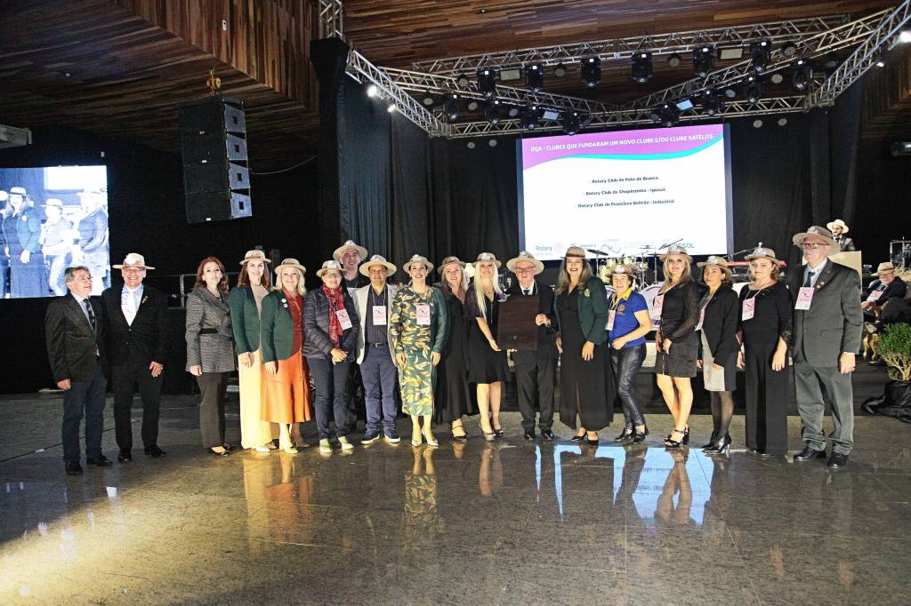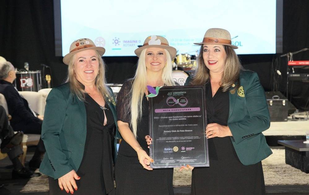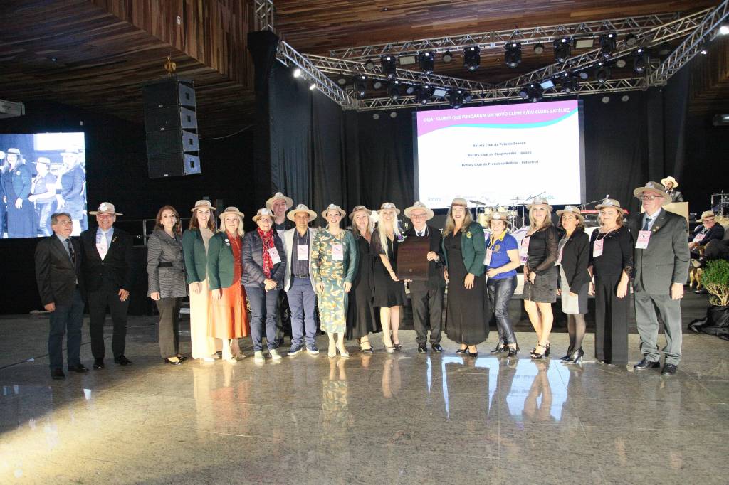 O dia tão esperado pela família Rotary chegou, e em especial ao Rotary Club de Pato Branco, clube anfitrião da Conferência. Dias 19 e 20/05/2023 foram marcados por uma alegria imensa, não só pelo momento festivo com a Governadora Anne, mas especialmente pelo fato do clube ser a casa da mesma, que é associada deste há 11 anos e tinha a responsabilidade de fazer desta Conferência um marco na história do Rotary. Foram muitos dias de luta, mas com a graça de Deus e o comprometimento de todos os companheiros, ao final pode-se desfrutar dos momentos de glória! E por falar neles….o clube foi agraciado com muitos certificados de metas cumpridas, e dentre todos, um muito especial, que há anos era esperado pelo clube, o certificado referente ao projeto global, o qual foi firmado em parceria com mais três clubes da cidade de Pato Branco e mais dois clubes internacionais, do Canadá e outro clube da Argentina, motivo mais que justo para que a conferencia fosse finalizada com chave de ouro!!! Vale ainda ressaltar, que o clube foi premiado também com a Placa Diamante, premiação essa de grande valia, tanto quanto os outros quase vinte certificados, pois está placa foi referente a criação de mais um clube de inovador, o então Satélite Inovação que já nasceu forte, pujante e em menos de um ano já tornou-se clube oficialmente! Como dito inicialmente, foram momentos de muita alegria, mas principalmente, momentos emocionantes e de companheirismo, que com certeza ficarão guardados na memória das mais de 1.000 pessoas que passaram esses dois dias vivenciando Rotary, e como diz a música tema da conferencia: “Amigos para sempre é o que nós iremos ser”.