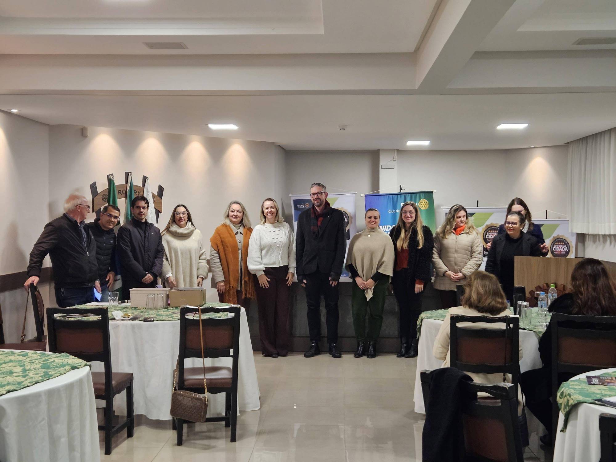 Na sequência, os companheiros que integrarão o novo Conselho Diretor foram chamados à frente, assumindo o compromisso de continuar fortalecendo o Rotary e suas causas. O momento foi de renovação e esperança.